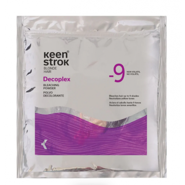 Keen Strok Bleaching Powder Non-Volatile Decoplex 9 Tones – нелетюча пудра для освітлення волосся до 9 тонів. Нейтралізує жовті відтінки та захищає волосся від ламкості. Завдяки кремовій консистенції зручно наноситься та розподіляється. Лише для професійного застосування в умовах салону. Не рекомендується використовувати вдома.