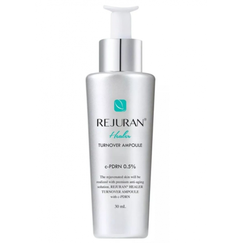 Антивікова сироватка для обличчя Rejuran Healer Turnover Ampoule 30 мл — професійний концентрований засіб для інтенсивного відновлення, оновлення та покращення якості шкіри. Продукт корейського бренду Rejuran розроблений для стимуляції природних процесів регенерації, вирівнювання текстури та зменшення видимих вікових змін. Сироватка працює на клітинному рівні, покращуючи щільність і еластичність шкіри.