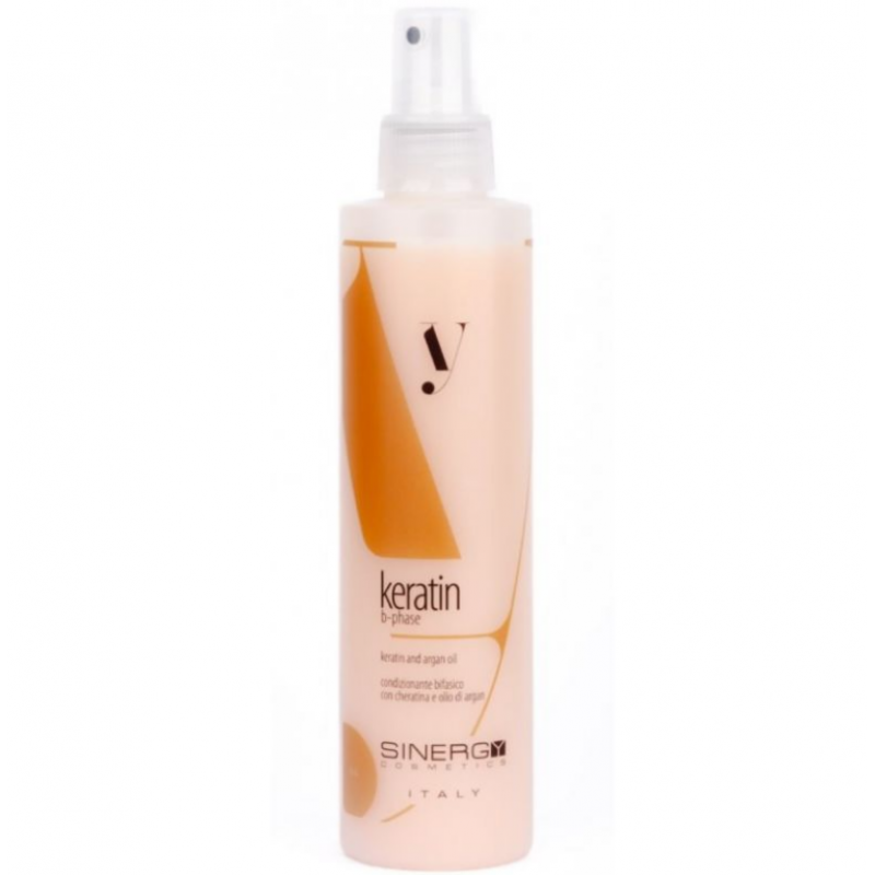 Двохфазний спрей-кондиціонер для реконструкції пошкодженого волосся з кератином Y4.4 Sinergy B-phase, 200 мл — це професійний незмивний засіб інтенсивного відновлення, який поєднує миттєвий догляд, зміцнення та захист волосся. Інноваційна двофазна формула активується при струшуванні, об’єднуючи зволожувальну та живильну фази для комплексного впливу на структуру волосся.