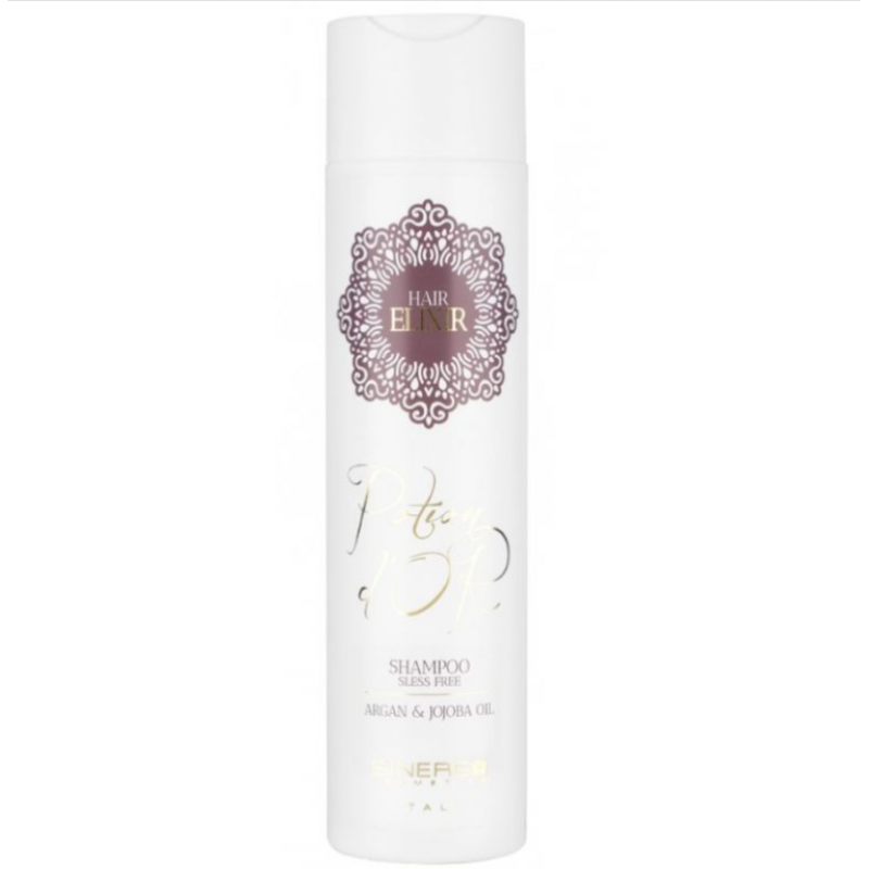 Шампунь з аргановою олією Sinergy Potion D'or, 250 мл — це професійний засіб для делікатного очищення та інтенсивного живлення волосся, який поєднує ефективний догляд і розкішний блиск. Формула на основі цінної арганової олії спрямована на відновлення структури волосся, глибоке зволоження та захист від сухості й зовнішніх факторів.