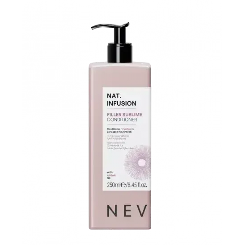 Nevitaly Filler Sublime Conditioner — професійний кондиціонер із філер-ефектом, створений для інтенсивного догляду за волоссям із порушеною структурою та недостатнім об’ємом. Засіб забезпечує миттєве розгладження, візуальне ущільнення та помітне підвищення пружності волосся без обтяження, зберігаючи його природну легкість і рухливість.