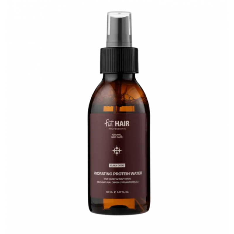 FutHAIR professional Curly Code Protein Water — це легка зволожуюча протеїнова вода-спрей об’ємом 150 мл, спеціально створена для кучерявого, хвилястого та пористого волосся.