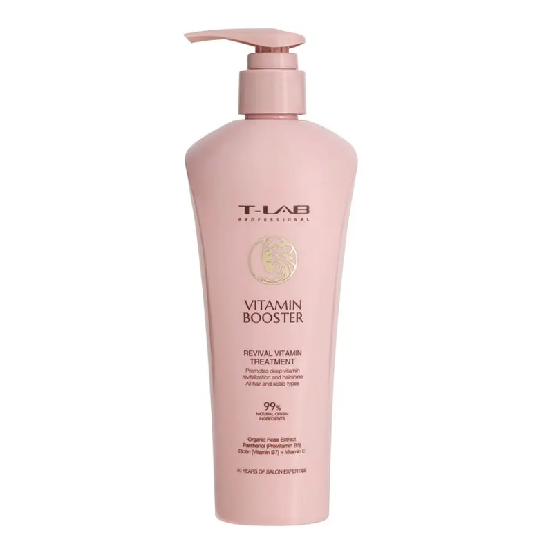 T-LAB Professional Vitamin Booster Revival Vitamin Treatment 300 мл — відновлюючий кондиціонер-маска, який поєднує потужне вітамінне живлення з ефектом глибокого відновлення. Ідеальне рішення для ослабленого, тонкого або втомленого волосся, що потребує щоденної сили, блиску та м’якості.