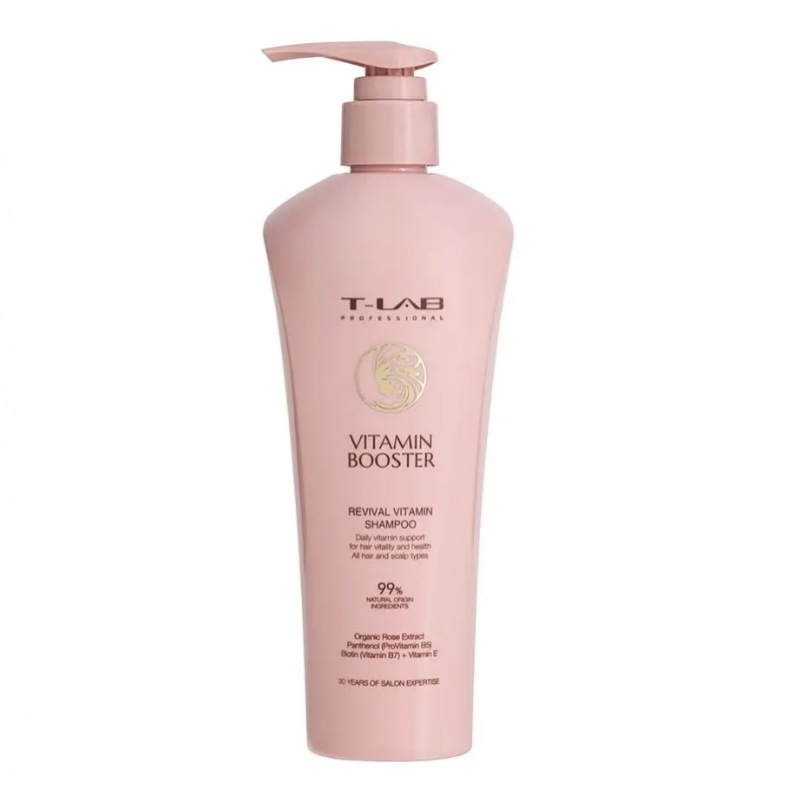 T-LAB Professional Vitamin Booster Revival Vitamin Shampoo — це професійний відновлюючий вітамінний шампунь об’ємом 300 мл з лінійки Vitamin Booster. Він розроблений для щоденного делікатного очищення ослабленого, тонкого, ламкого або втомленого волосся, яке втратило силу, блиск і життєву енергію.