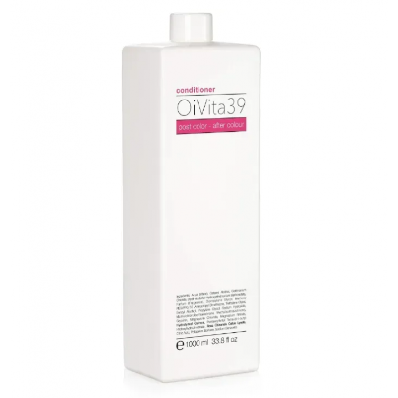 OiVita39 AfterColor — професійний кондиціонер, створений для інтенсивного догляду та збереження насиченості кольору після фарбування й хімічних процедур. Формула кондиціонера доповнює дію шампуню, допомагаючи стабілізувати пігмент, покращити структуру волосся та надати йому м’якість, гладкість і природний блиск.