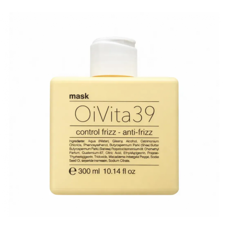 OiVita39 Anti Frizz — професійна розгладжувальна маска для волосся з олією макадамії, створена для інтенсивного живлення, пом’якшення та контролю пухнастості. Концентрована формула глибоко проникає у структуру волосся, допомагаючи вирівняти поверхню, зменшити сухість і надати волоссю доглянутого, гладкого вигляду.