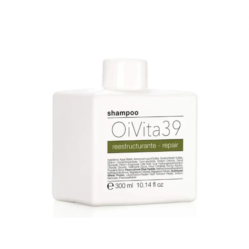 OiVita39 Repair — професійний відновлювальний шампунь для пошкодженого волосся, створений для м’якого очищення та комплексного догляду. Формула шампуню не тільки видаляє забруднення, але й інтенсивно зміцнює структуру волосся, відновлює його еластичність і природну м’якість.