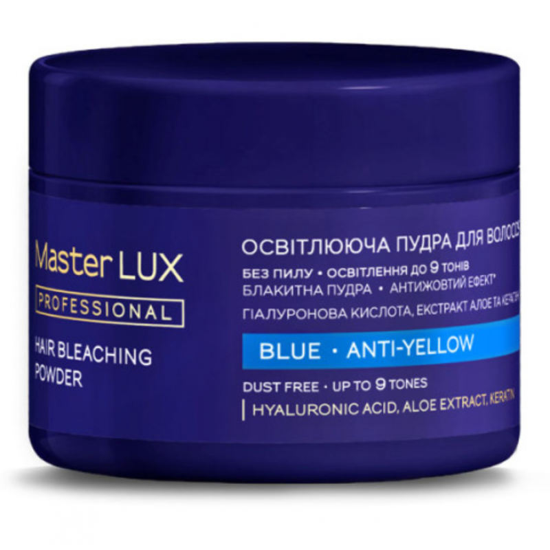 Master LUX Blue Anti-Yellow Bleaching Powder — це професійна освітлююча пудра для волосся, яка поєднує потужну дію та контроль якості результату. Вона активно руйнує натуральний і штучний пігмент, дозволяючи досягти високого рівня освітлення з максимально рівномірним ефектом.