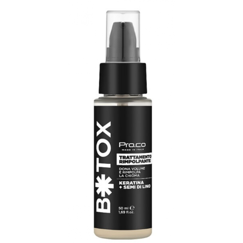 Pro. Co Botox Effect Plumping Treatment — це професійний італійський філер-наповнювач, який поєднує відновлення, ущільнення та зволоження волосся. Компактний формат 50 мл ідеально підходить для курсового застосування або як експрес-процедура для швидкого відновлення волосся.