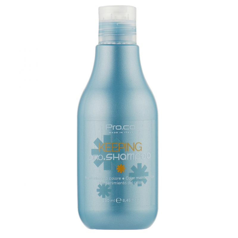 Pro. Co Keeping Shampoo — це професійний італійський шампунь, який поєднує очищення, захист кольору та інтенсивний догляд. Він ідеально підходить як базовий засіб після фарбування та допомагає зберігати результат салонної процедури максимально довго.