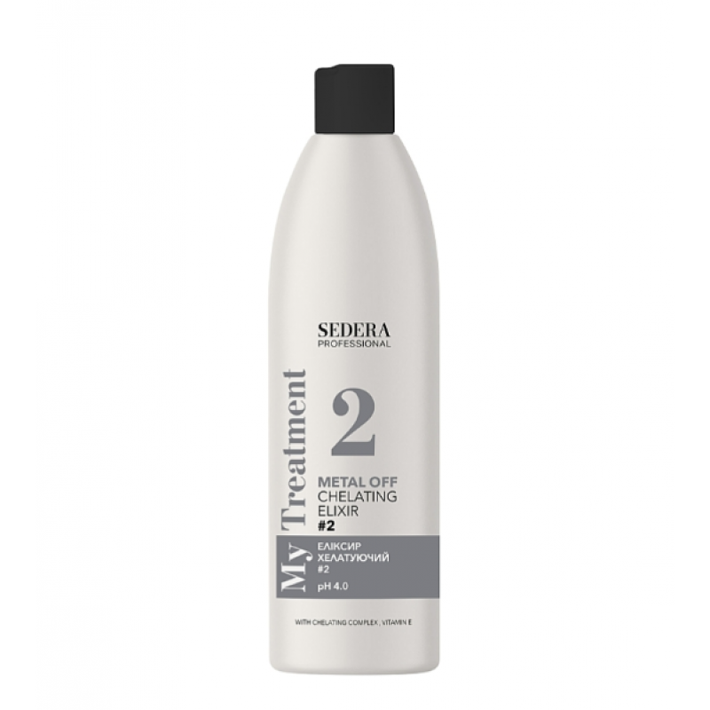 Sedera My Color Metal-Off Chelating Elixir #2 — професійний хелатуючий засіб другого етапу, створений для глибокої детоксикації волокна волосся від накопичених металів, мінералів, хлоридів та домішок жорсткої води. Формула активно розчиняє зв’язки між іонами металів та кератиновою структурою, нейтралізує їх дію та готує волосся до подальших процедур фарбування або відновлення.
