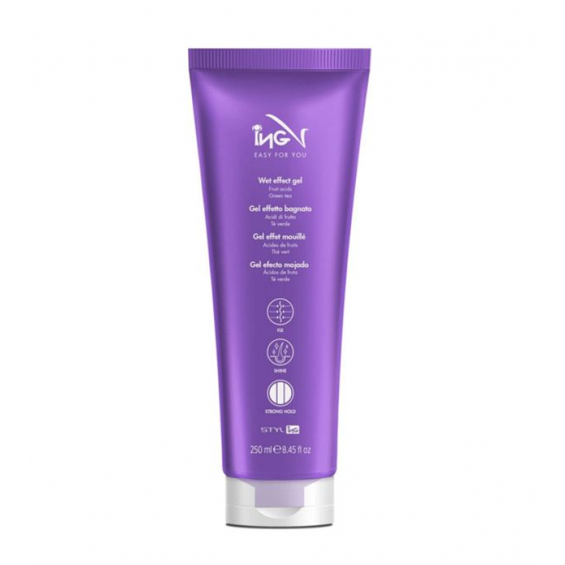 ING Styling Wet Effect Gel особливо добре працює в умовах високої вологості — укладання зберігає чіткість, а волосся не розпушується та не втрачає форми. При нанесенні на вологе волосся він забезпечує більш інтенсивний мокрий ефект, а на сухому — створює виразний блиск і структурну форму. Завдяки високій концентрації активних компонентів засіб економно витрачається й дозволяє досягти професійного результату без зайвих зусиль.