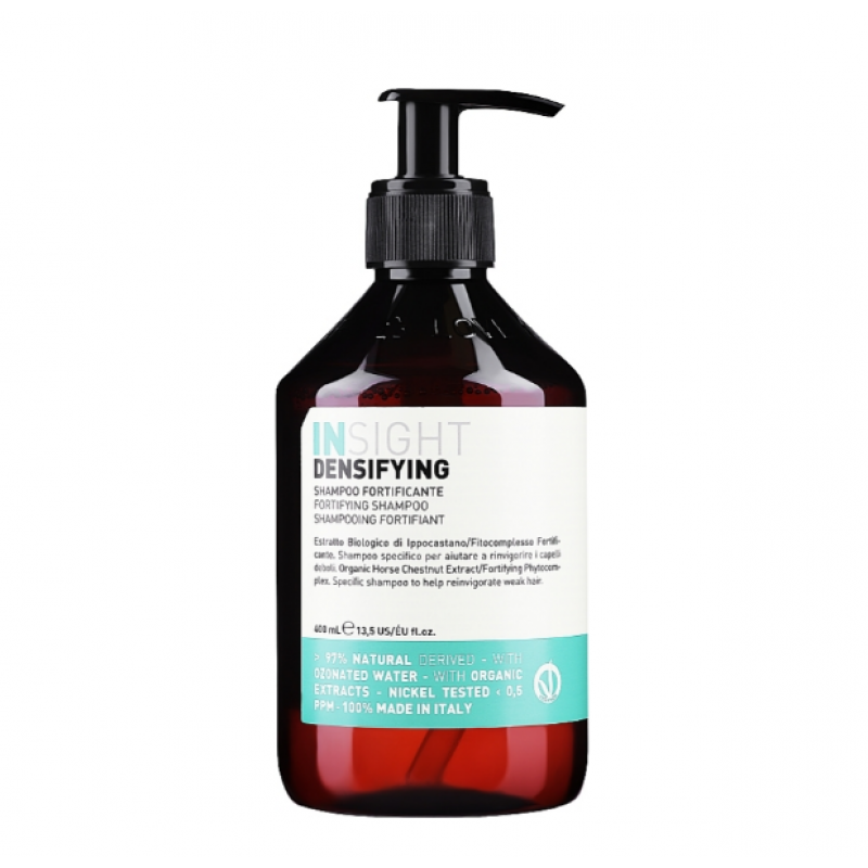 Шампунь зміцнюючий проти випадіння волосся від Insight (Італія) нормалізує кровообіг шкіри голови, тонізує, освіжає, зміцнює волосся. Містить біологічний екстракт каштана, екстракт гуарани, ментол, біологічний екстракт ехінацеї.