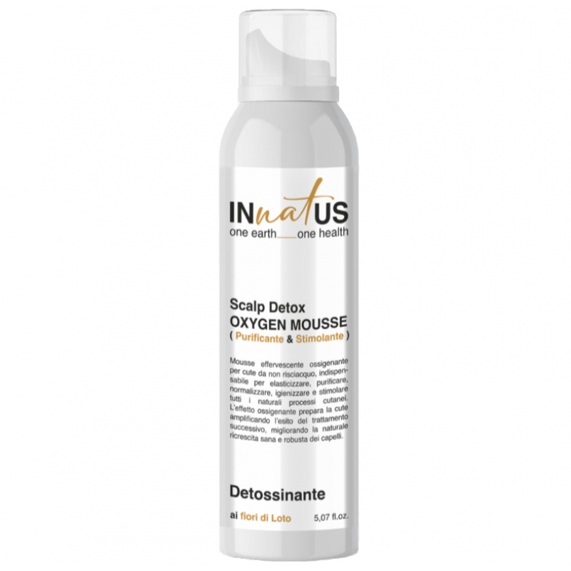Innatus Scalp Detox Oxygen Mousse є унікальним засобом для догляду за шкірою голови, який має безліч корисних властивостей. Цей незмивний оксигенуючий мус призначений для покращення еластичності шкіри, її глибокого очищення, нормалізації обмінних процесів, дезінфекції та стимуляції всіх природних функцій. Основним завданням даного продукту є насичення шкіри голови киснем, що створює ідеальні умови для подальшого догляду та лікування волосся.