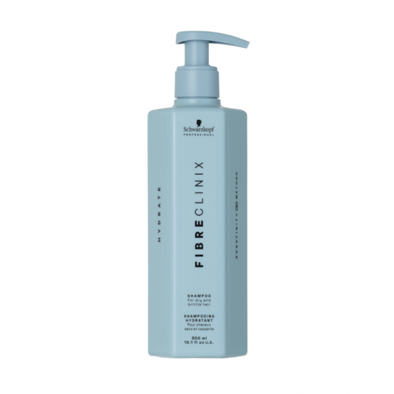 Fibre Clinix Hydrate c інтегрованою потрійною бондинг-технологією та технологією С21, а також Скваланом відновлюють гідробаланс, підвищують еластичність волосся. Делікатно очищає пошкоджене волосся, готуючи його до подальших послуг догляду. Відновлює, зміцнює та надає еластичність внутрішній структурі волосся. Надає волоссю гладкість і блиск.
