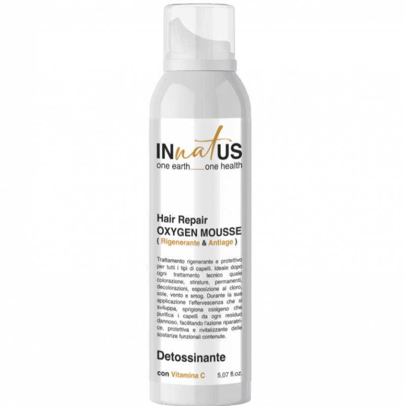 Innatus Hair Repair Oxygen Mousse – це унікальний засіб, призначений для відновлення та захисту волосся будь-якого типу. Його формула розроблена з урахуванням потреб волосся, що зазнало різних технічних обробок, таких як фарбування, випрямлення, хімічна завивка та знебарвлення. Крім того, цей мус відмінно справляється з негативними впливами зовнішнього середовища, такими як хлор із басейнів, сонячні промені, вітер та забруднене повітря.
