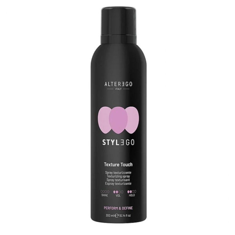 Alter Ego Stylego Texture Touch 300 мл — це професійний текстуруючий спрей середньої фіксації, створений для формування виразної структури, підкреслення шарів стрижки та надання зачісці динамічного об’єму. Засіб дозволяє легко моделювати форму, зберігаючи природну рухливість волосся.