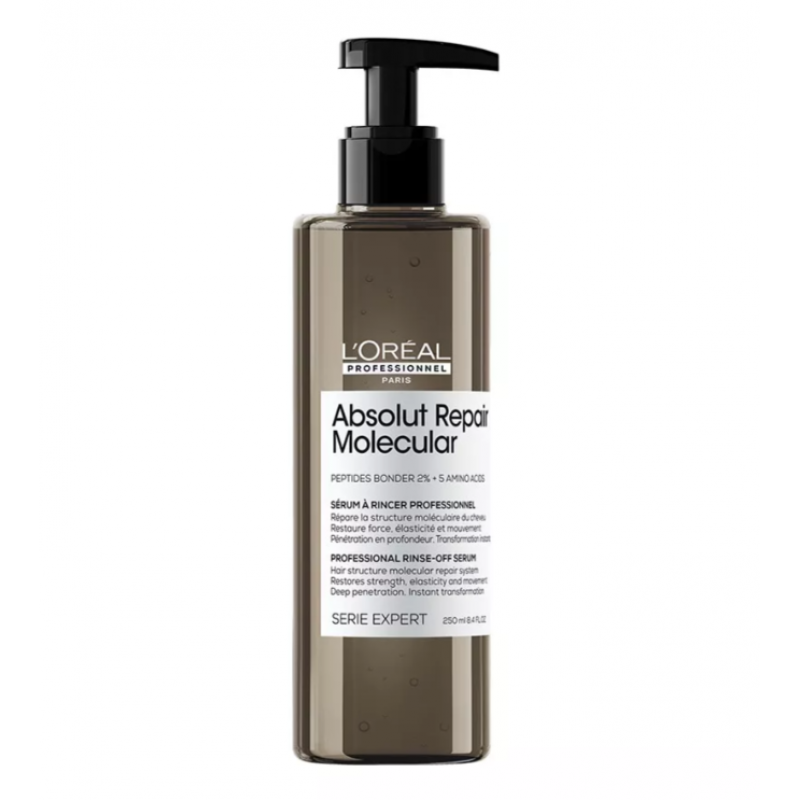 Сироватка змивна для молекулярного відновлення пошкодженого волосся L’Oréal Professionnel Absolut Repair Molecular 250 мл — професійне рішення для швидкої реконструкції, зміцнення та повернення волоссю здорової структури й доглянутого вигляду.