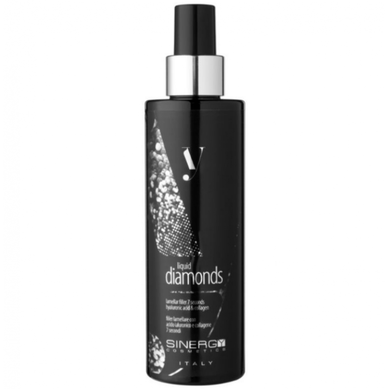 Спрей-філер миттєвої дії з гіалуроновою кислотою для волосся Sinergy Liquid Diamonds, 200 мл — це інноваційний професійний засіб для інтенсивного зволоження, відновлення та візуального ущільнення волосся. Формула нового покоління працює як експрес-філер, миттєво покращуючи структуру волосся, надаючи йому гладкість, блиск і ефект «дзеркального сяйва».