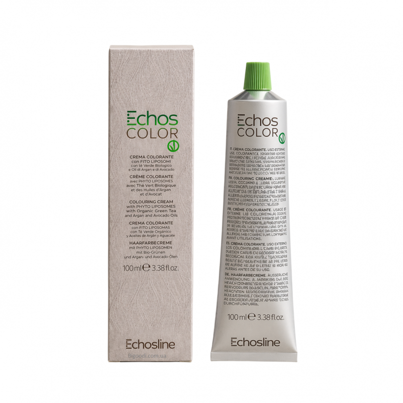 Професійна кремова фарба для волосся Echos Color фірми Echosline збагачена вітаміном С і містить бджолиний віск. Її формула дозволяє забезпечити чудовий результат фарбування, вплив інгредієнтів фарби Echosline надає волоссю слухняність, м'якість і доглянутий вигляд.Завдяки такому унікальному складу Echos Color echosline забезпечує підвищену стійкість відтінків кольору і стовідсоткове зафарбовування сивини, надає волоссю сяйво і яскравість.