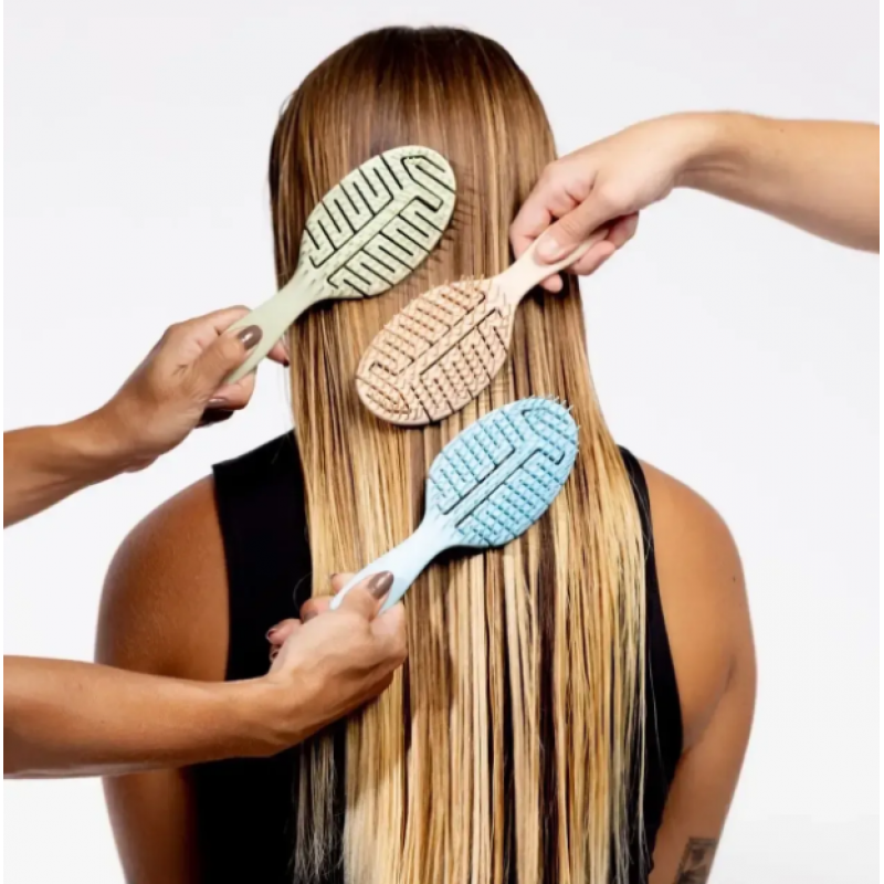 Ідеально розплутує волосся, завдяки спеціальним волокнам та гнучкому корпусу гребінця, адаптуючись до будь-якої форми голови та типу волосся. Наявність отворів, що пропускають повітря, допомагає видаляти надлишки вологи і скорочує час сушіння волосся.