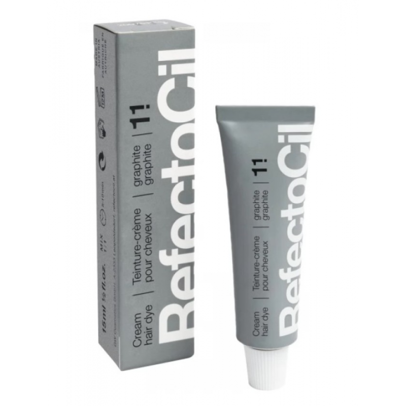 Відтінок № 1.1 graphite (графіт) спеціально розроблений для брів з просіддю. Ця фарба чудово зафарбовує сиві або світле волосся, надаючи їм різні відтінки – від світло-сірого до темно-сірого в залежності від тривалості процедури фарбування. Універсальна у використанні. Можливе поєднання з RefectoCil№2.1 (темно-синій) для додання глибини кольору, №3 (натурально-коричневий) для теплих брюнеток. Використовується з 3% з рідким або кремовим окислювачем RefectoCil Oxidant.