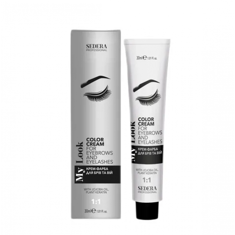 SEDERA Professional My Look Color Cream — це професійна крем-фарба для брів і вій з безпечним складом, що поєднує стійке фарбування (до 4 тижнів), живлення від протеїнових комплексів та ніжний догляд завдяки олії жожоба та пантенолу. Простота змішування, комфорт під час нанесення і виразний, насичений результат роблять її чудовим вибором для салонів і домашнього використання.